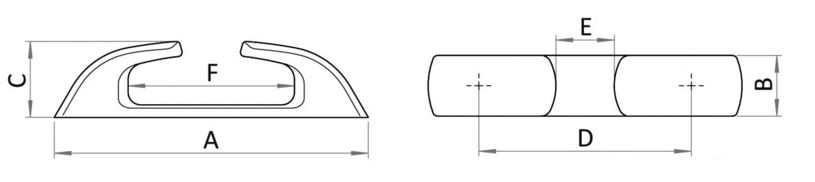 Aus Edelstahl AISI 316. Beschreibung: Gerade Für Tau bis zu Ø: 22 mm Optionale Bolzen: 40.142.12 (M12) Maße: A: 200 mm B: 39 mm C: 48 mm D: 135 mm E: 37 mm F: 105 mm