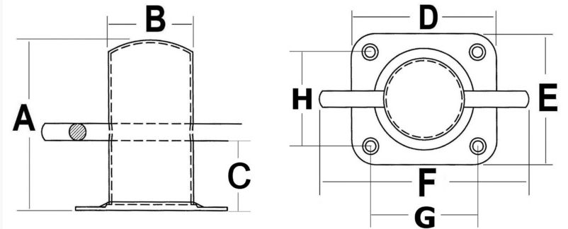 Aus hochglanzpoliertem Edelstahl AISI 316. A: 120 mm B: Ø 60 mm C: 68 mm D: 120 mm E: 95 mm F: 180 mm G: 95 mm H: 70 mm Ø Schraubenloch: 6,5 mm