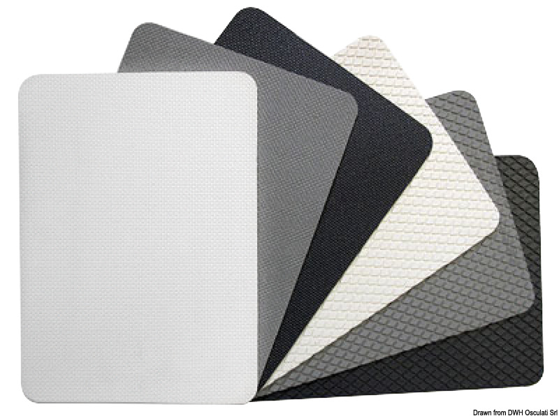 Neuartiger Deckbelag, der sich durch seine geringe Stärke besonders gut der Bootsform anpasst. Besonders rutschfest.