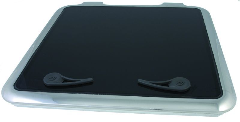 Decksluke aus nahtlosem, nichtrostendem Edelstahl mit getöntem Acryl, 10 mm Glasstärke. Sie verfügt über zwei integrierte Griffe, die ein einfaches Öffnen ermöglichen, und ist von innen verriegelbar.