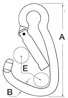 Aus rostfreiem Edelstahl AISI 316. Mit weiter Öffnung und Schnappverschluss. Version: Standard A: 122 mm / B: 11 mm E: 23 mm