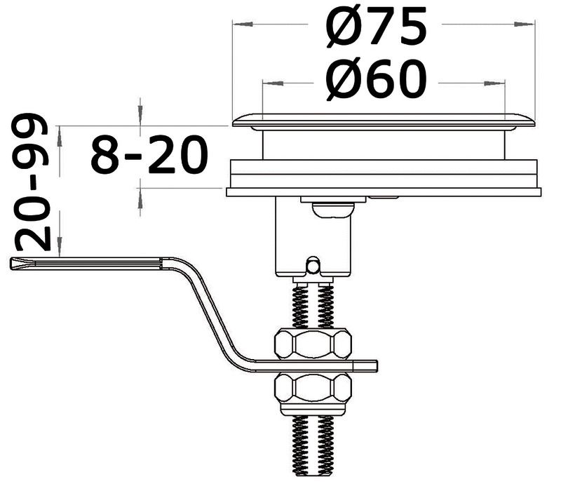 Schloss: nein Ø außen: 75 mm Ø Schottenloch: 60 mm Schottenstärke: 8-20 mm Verstellbarer Anschlaghebel: 20-99 mm
