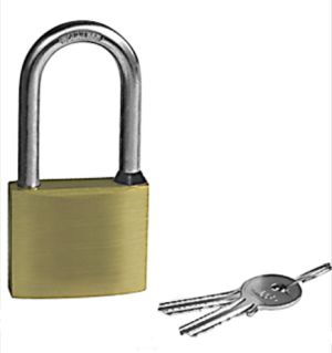 Messing Vorhängeschloss mit extra lange NIRO Bügel, Abmessungen 50x40mm