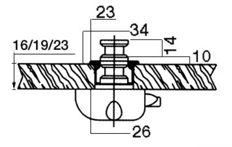 Befestigung: Zwei Schrauben, Rosette von außen durch 26 mm Bohrung