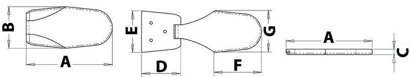 Aus hochglanzpoliertem rostfreiem Edelstahl. A x B: 70 x 36 mm C: 10 mm D x E: 35 x 36 mm F x G: 35 x 35 mm