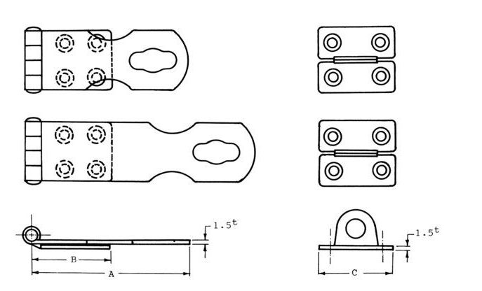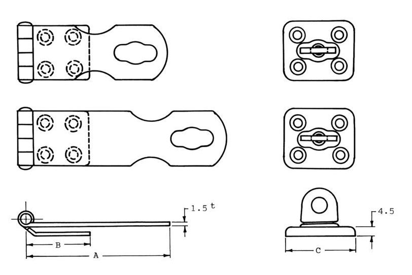Material: Edelstahl 304, poliert Breite: 24 mm A: 64 mm B: 29 mm C: 31,5 mm