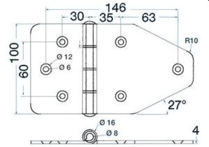 Große Scharniere aus rostfreiem hochglanzpoliertem Edelstahl Dicke 4 mm Gelenk 8mm 180 x 100mm