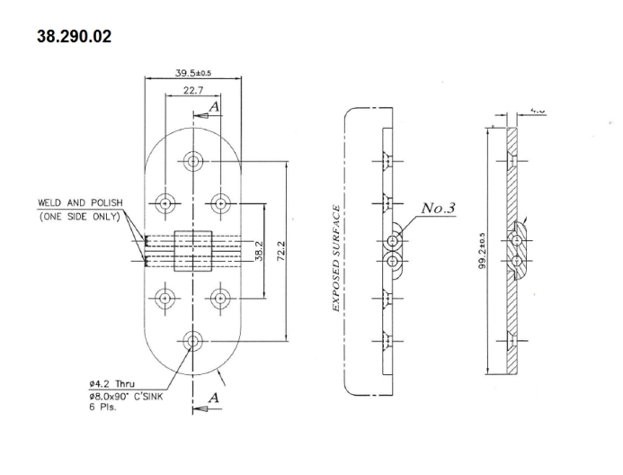 Scharnier aus hochglanzpoliertem rostfreiem Edelstahl, für Klappen und Klapptische 100 x 40 mm Stärke: 4,0 mm Version mit Löchern