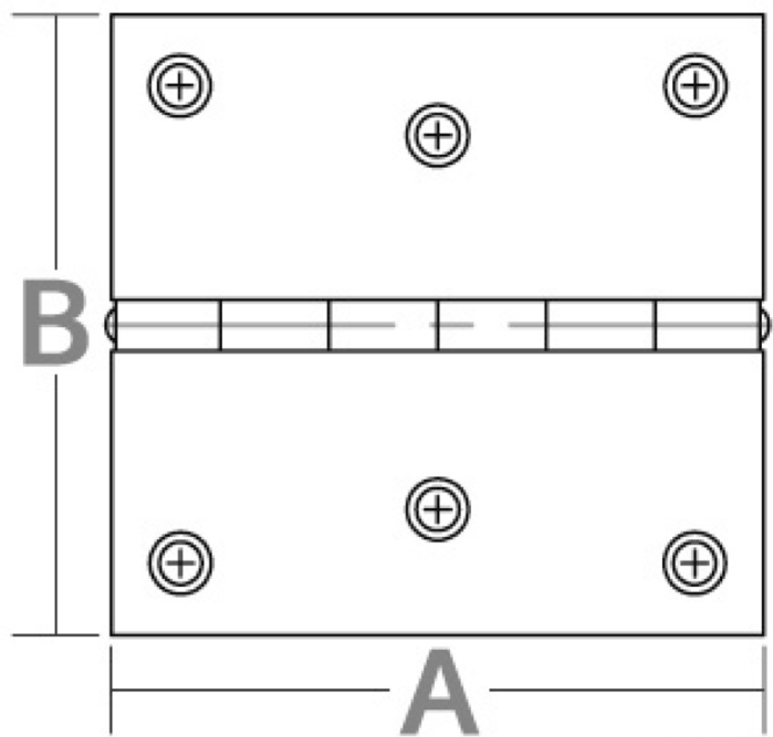 Rechteckige Schaniere aus rostfreiem Edelstahl, hochglanzpoliert Stärke 1,3mm, Maße (AxB) in mm: 75 x 40