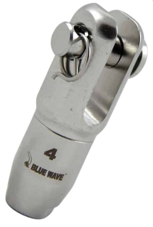 Aus poliertem Edelstahl 316. • Beschreibung: Gabelterminal • Leine Ø mm: 4 • Gewinde: – • Stift Ø mm: 8 • Bruchlast kg: 1900