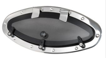 Aus hochglanzpoliertem Edelstahl AISI 316 bestehend, besitzen sie folgende technischen Eigenschaften: nicht sichtbare Außenschrauben, ausgeprägte Kante für Wasserablauf, mit Gegenflansch und Moskitonetz ausgestattet, verstellbare, nicht hervorstehende Feststellmuttern, durchsichtiger Teil aus getöntem Acrylglas, EU-Zulassung, Bereich 1, Kategorie 1, spezielles Befestigungsverfahren: das Bullauge lässt sich durch eine einzige äußerst kurze Tätigkeit mit dem Gegenflansch verbinden, was für die Werft eine erhebliche Arbeitszeitersparnis bedeutet.