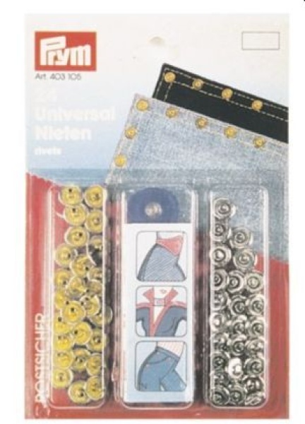 Messing vernickelt. 24 Stück pro Karte mit Werkzeug. Verpackung abweichend.