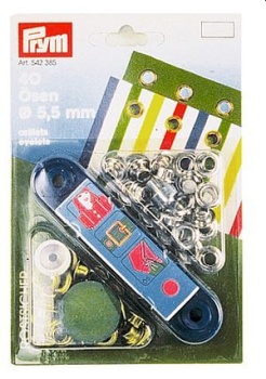 • Ösen mit Scheiben, Ø 5mm, Messing vernickelt. • 40 Stück pro Karte mit Werkzeug.