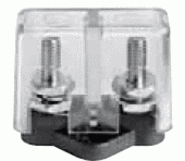 Geeignet für hohe Ampèrezahlen, die nicht vom Verteiler ausgehen, sondern vom Durchmesser der Kabel abhängen. Sockel aus Nylon/Glasfaser. Bolzen aus Edelstahl, Muttern aus verchromtem Messing.