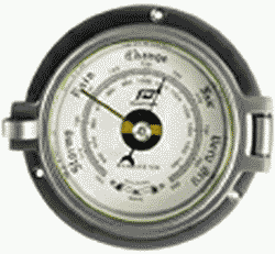 Mattes Chromgehäuse Geschliffenes Glas Hochsensibler, aneroider Präzisionsbarometer mit durchgehender Metallkette Zifferblattdurchmesser: 7,5 cm Gehäusedurchmesser: 12 cm